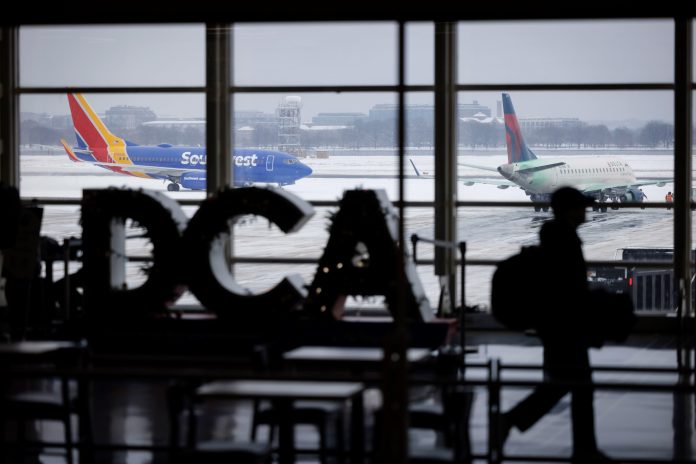 More than 87% of the Sunday flights were canceled at LaGuardia Airport in New York and 96% at Ronald Reagan Washington National Airport. More than 70% of flights at Newark Liberty International Airport in New Jersey and New York’s John F. Kennedy International Airport, which have more international flights, were also canceled for Sunday.
