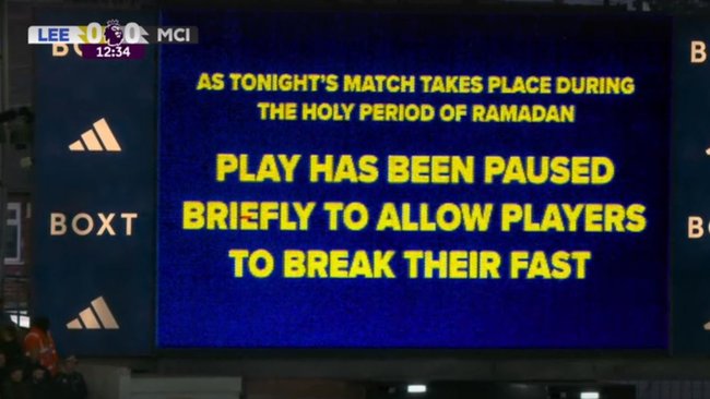 City’s clash against Leeds was briefly paused after 12 minutes to allow Muslim players on both sides, including City’s Omar Marmoush, Rayan Cherki and RayanAit-Nouri, to break their Ramadan fast.