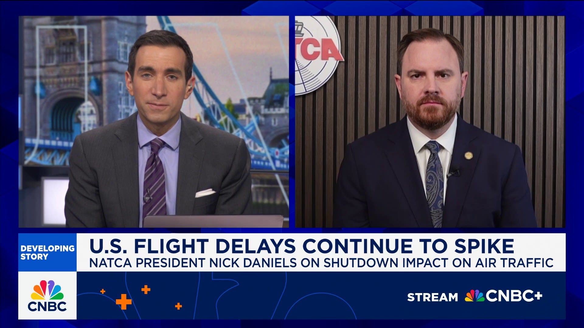 Nick Daniels, National Air Traffic Controllers Association president, joins ‘Squawk Box’ to discuss impact of the ongoing government shutdown on air traffic controllers, whether air travel remains safe, potential impact on the upcoming holiday season, and more.