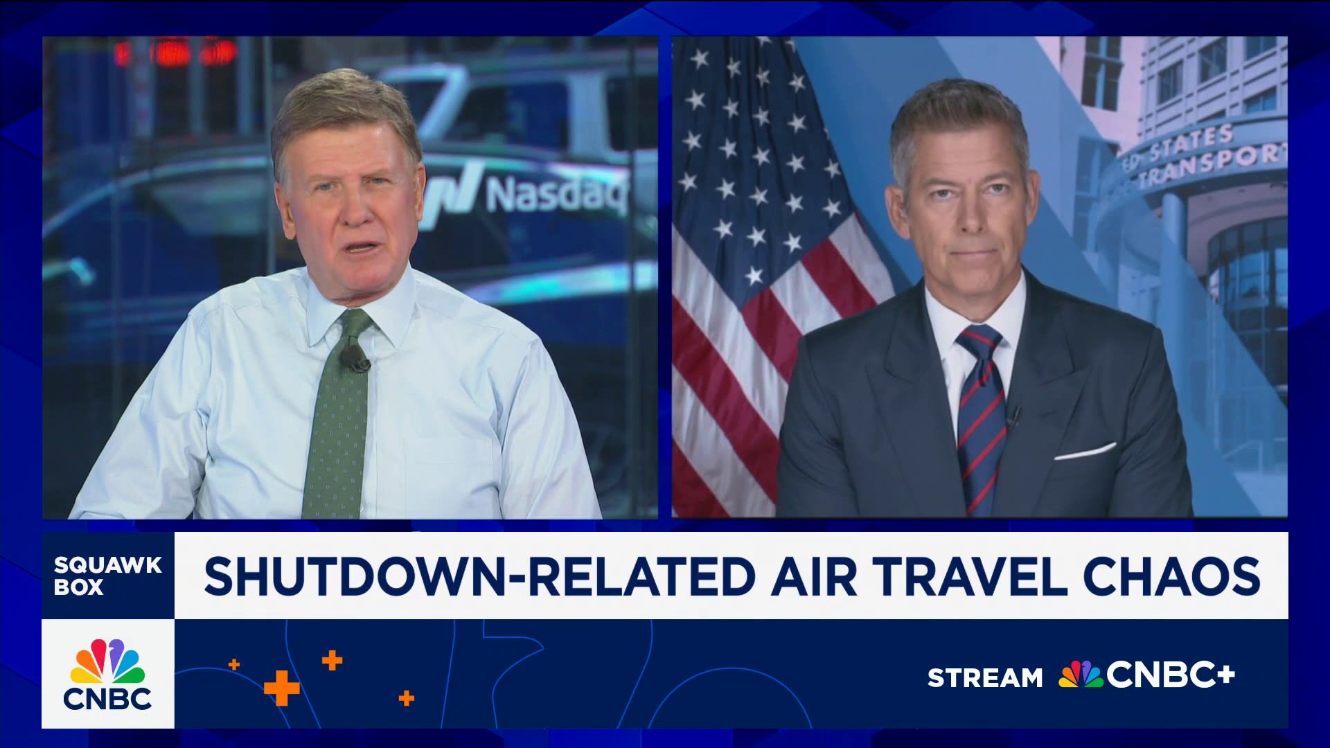 Transportation Secretary Sean Duffy joins ‘Squawk Box’ to discuss the government shutdown’s impact on air travel, air traffic controllers shortage, whether air travel remains safe, and more.