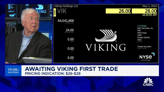 The luxury cruise line was targeting a $10.4 billion valuation in its initial public offering on the New York Stock Exchange on Wednesday, making it the third-largest cruise operator after Royal Caribbean and Carnival. Norwegian Cruise Line is the fourth largest. Viking started trading Wednesday at $26.15 a share under the ticker “VIK” after pricing at $24 a share.